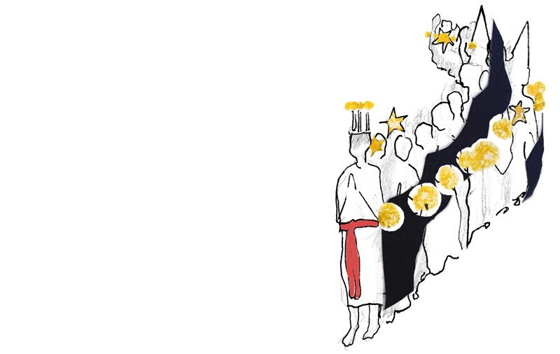 In December you will discover that you indeed can survive on daylight between 9 AM and 3.30 PM. To your help in this dreadful time comes Sankta Lucia: an Italian saint that for some reason appears in Sweden on the 13th with candles in her hair. This is also the month of pepparkakor (ginger bread cookies), lussekatter (saffron buns) and julskinka (Christmas ham).